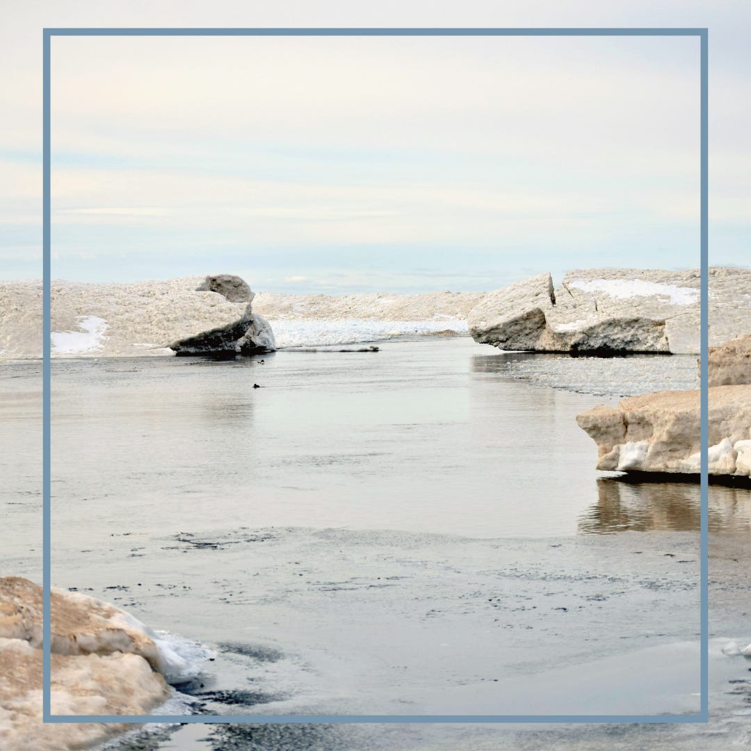 At the water’s edge, drifts of ice have begun to form and break apart. The chunks roll over one another making a sound that reminds me of shards of broken glass being swept into a dustbin. Further on up the beach, larger ice sheets shift and sway on the surface, bumping into one another, cracking, fracturing. Water gurgles up between the fissures. The sun, glittering off the water, dazzles. With the lines of land docked sailboats ringing like bells in the distance, I realize that winter is as much a musical season as spring, a symphony few dare step outside to hear.